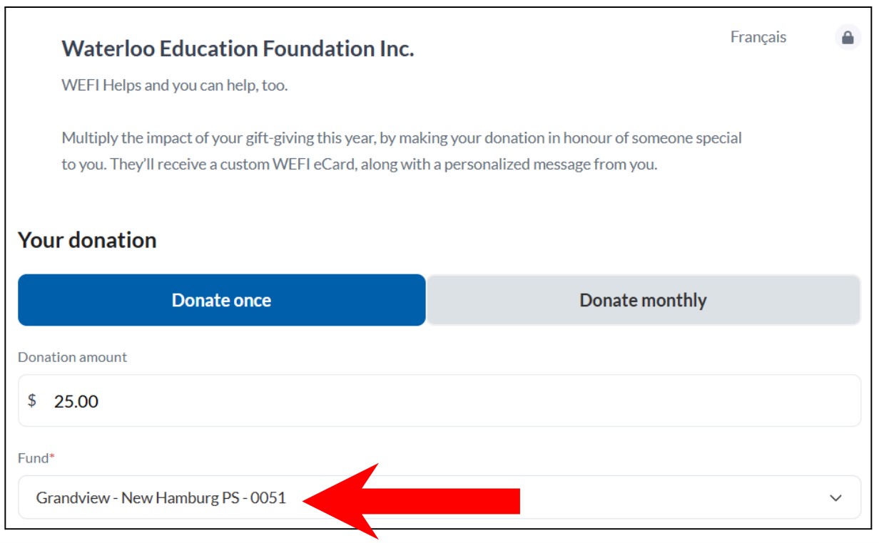 To contribute, please visit the WEFI Portal and select Grandview – New Hamburg PS from the drop-down menu before confirming your donation.